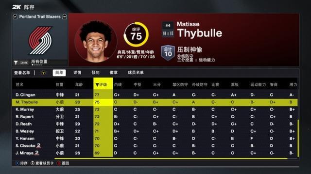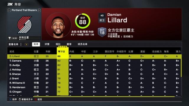 直播吧8月30日讯 今日NBA 2K26正式发布,开拓者队球员能力值如下: