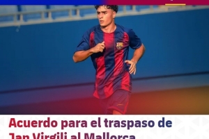 巴萨俱乐部在官网发布公告称:“巴萨俱乐部和马洛卡俱乐部已经就球员扬-维尔吉利的转会达成协议。巴萨俱乐部保留了球员未来转会一定比例的分成,以及球员的优先购买权。巴萨俱乐部祝福球员未来好运并取得成功。”