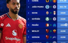 yl23455永利注册登录-今夏巴西球员转会费用排名:库尼亚超越佩德罗位列榜首,埃斯特旺与安东尼上榜